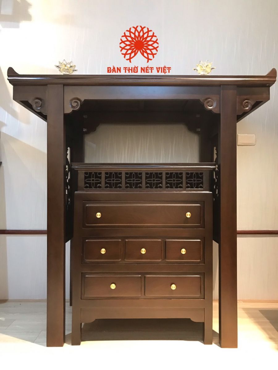 Không gian tủ thờ 2 tầng trúc chỉ hoa sen