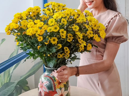 - Hoa Cúc Vàng: hoa cúc vàng là biểu tượng của sự trường thọ và tôn kính. Màu vàng của hoa cúc còn mang đến sự ấm áp và bình an, giúp gia chủ có cuộc sống viên mãn, sung túc.